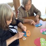 「昔巻きずしよく作ってました」と話をしてくださったり、入居者様同士で教え合ったりしながら楽しまれたり、